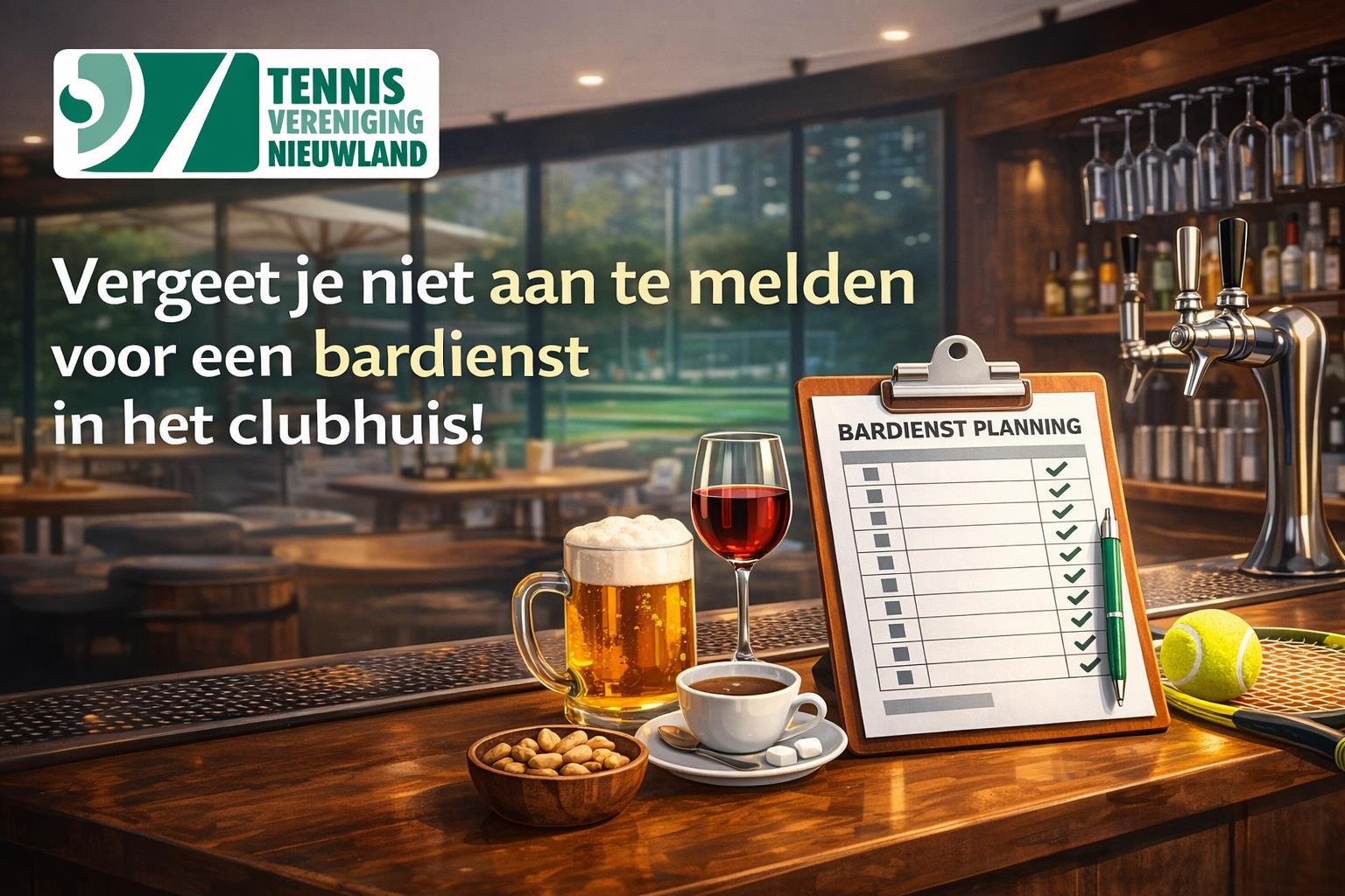Heb je jouw verplichte drie bardiensten nog niet (allemaal) ingepland? Dan willen we je vragen dit nu te doen. Zo zorgen we er samen voor dat het bardienstschema optimaal gevuld is en alles soepel verloopt.